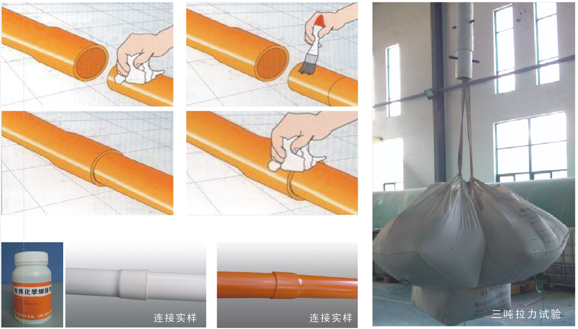 采用HPVC管專用化學(xué)焊接劑連接方式,連接接口拉伸強(qiáng)度大于本體拉伸強(qiáng)度。